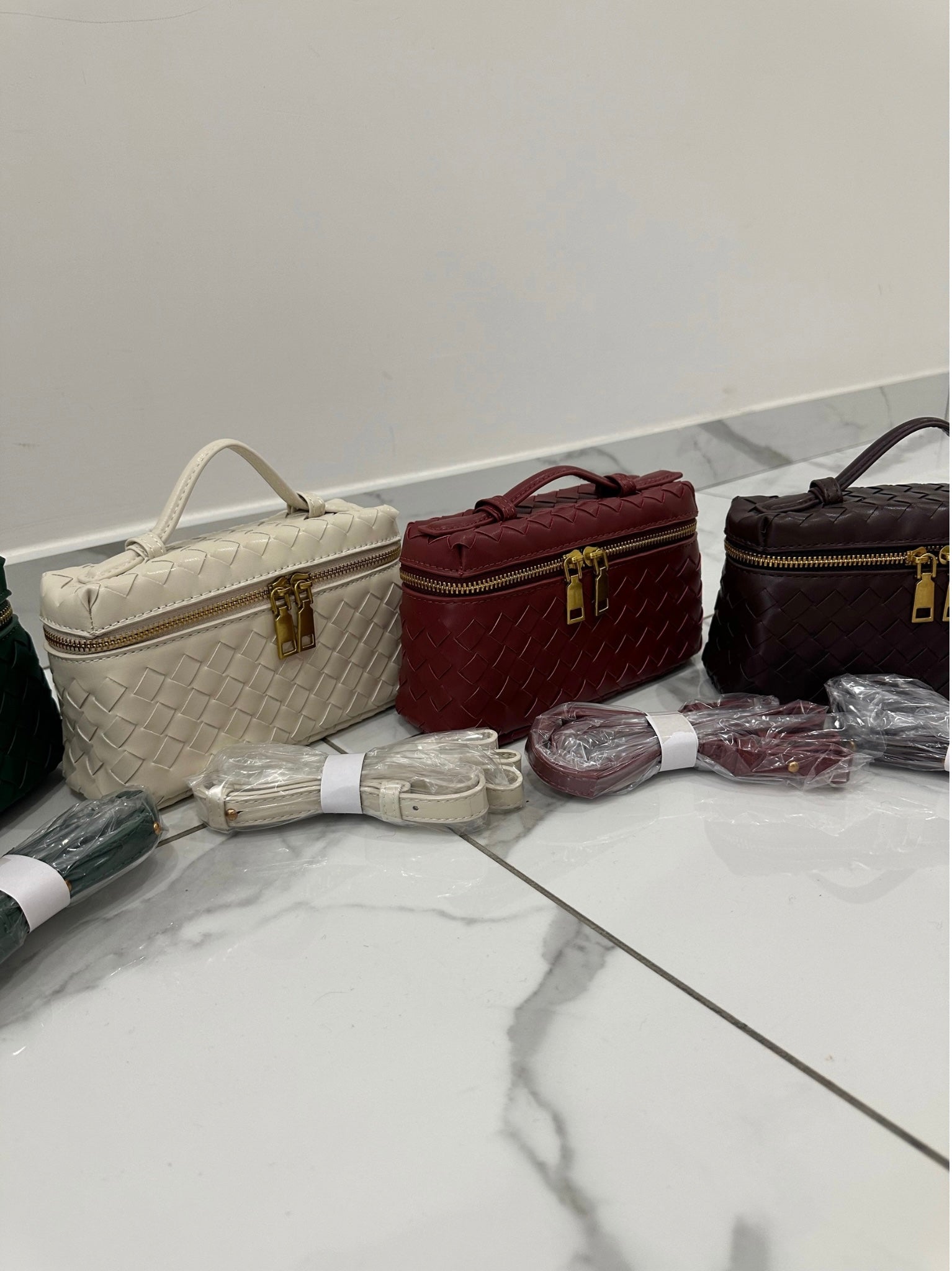 Borsa in similpelle bordeaux intrecciata, con tracolla abbinata nello stesso tessuto e colore. Super cute e carinissima, ideale per arricchire un outfit serale o per dare un tocco speciale anche a quello da giorno. La sua eleganza senza tempo e la praticità della tracolla la rendono perfetta per ogni occasione. Comoda e raffinata, questa borsa aggiunge un tocco di classe a qualsiasi look, conferendo al contempo un tocco di personalità. Un must-have per ogni fashionista che ama distinguersi con stile.