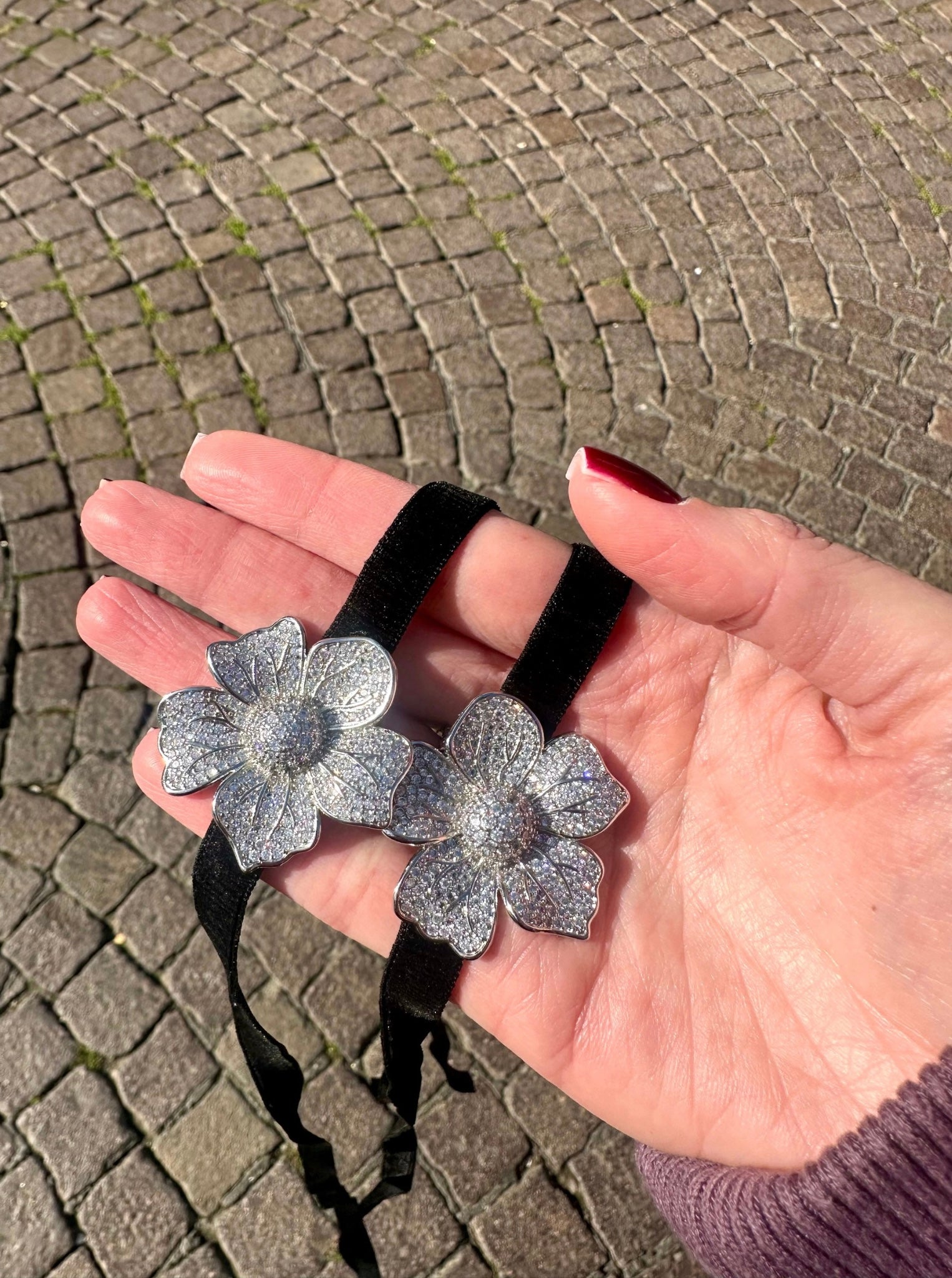 Choker “Margherita” in Velluto con Brillantini –anallergenico e Senza Nichel