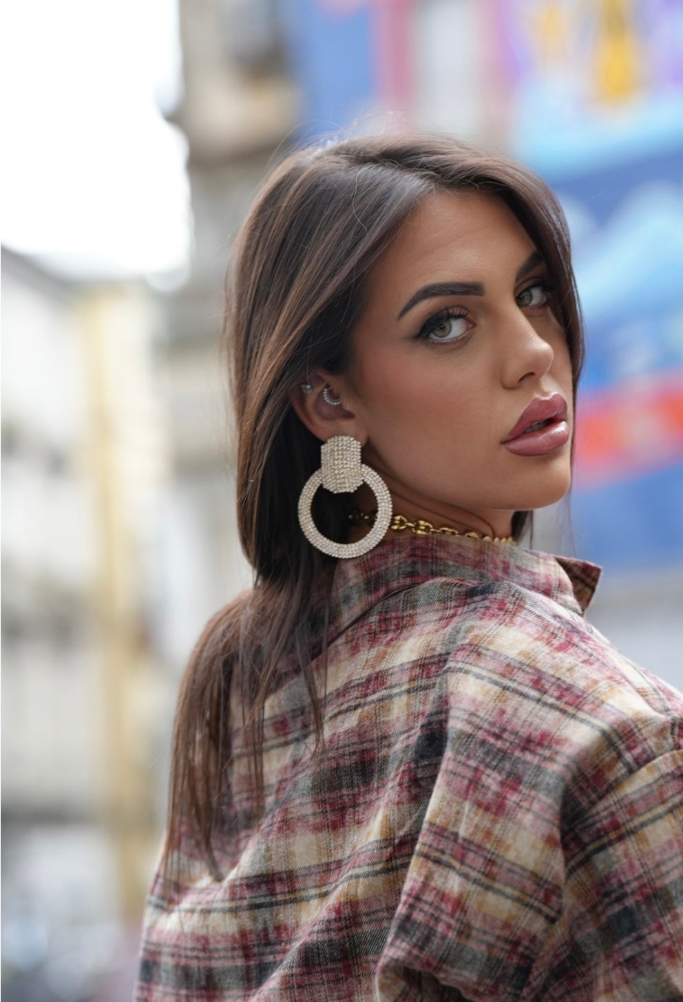 Gli orecchini Giovanna sono il tocco perfetto per brillare con eleganza. Con base gold e dettagli di brillantini luminosi, sono anallergici e privi di nichel, ideali anche per le pelli più delicate. Raffinati ma con un tocco super cute, si abbinano perfettamente a un look da sera, ma aggiungono luce anche agli outfit più semplici. Un accessorio irresistibile