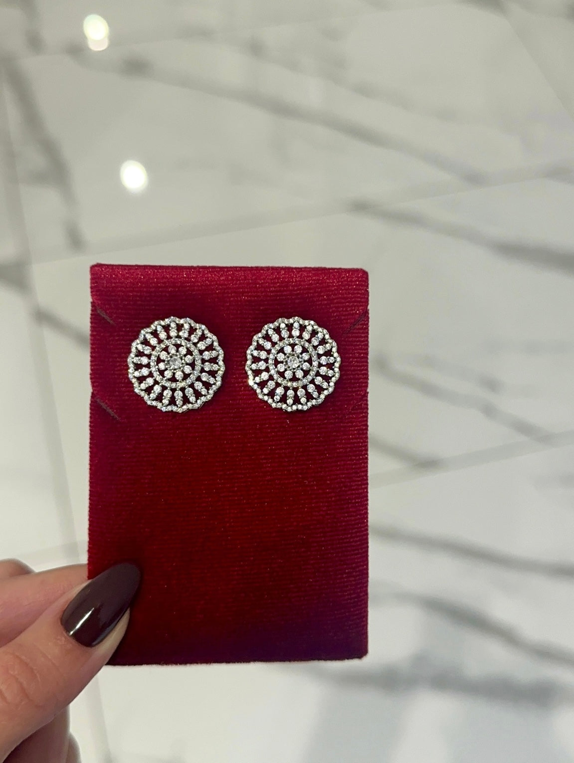 Bottone con fiore al centro, stile minimal ma elegante: sfondo chiaro, fiore stilizzato only silver.