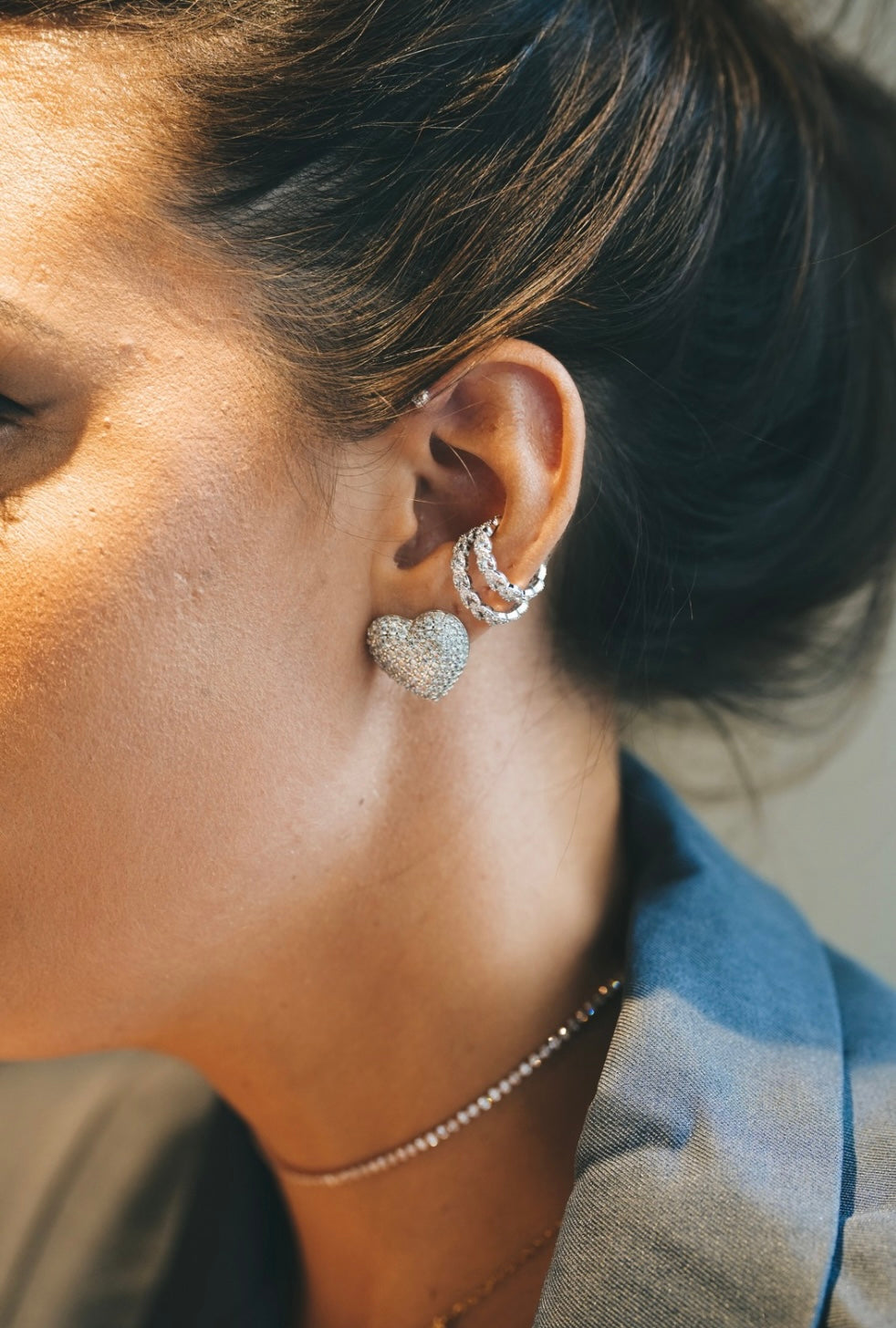 Scopri la nostra esclusiva collaborazione Silver e Gold: orecchini dal design elegante con cuore bombato, disponibili in una raffinata finitura bicolore.